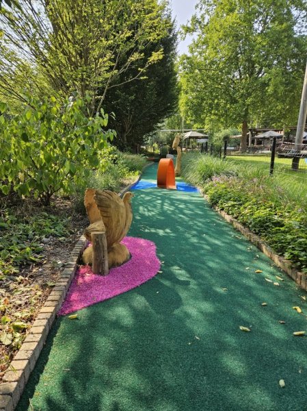 Of je nu een beginner bent of een doorgewinterde minigolfkampioen, onze baan biedt plezier voor jong en oud. En maak je geen zorgen als je even wilt bijkomen: er staan bankjes verspreid over de baan. Zo kun je lekker zitten, even een praatje maken of gewoon genieten van de omgeving voordat je weer verdergaat.