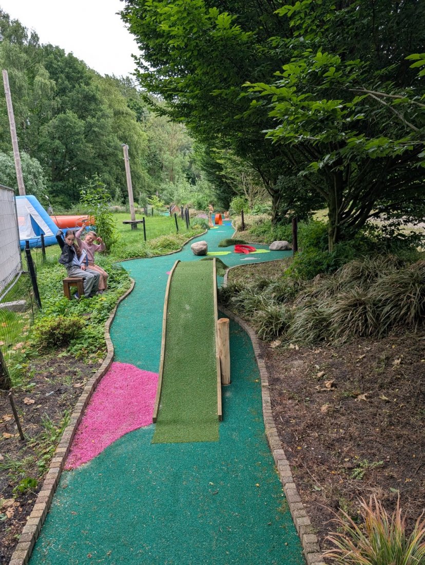 Of je nu een beginner bent of een doorgewinterde minigolfkampioen, onze baan biedt plezier voor jong en oud. En maak je geen zorgen als je even wilt bijkomen: er staan bankjes verspreid over de baan. Zo kun je lekker zitten, even een praatje maken of gewoon genieten van de omgeving voordat je weer verdergaat.